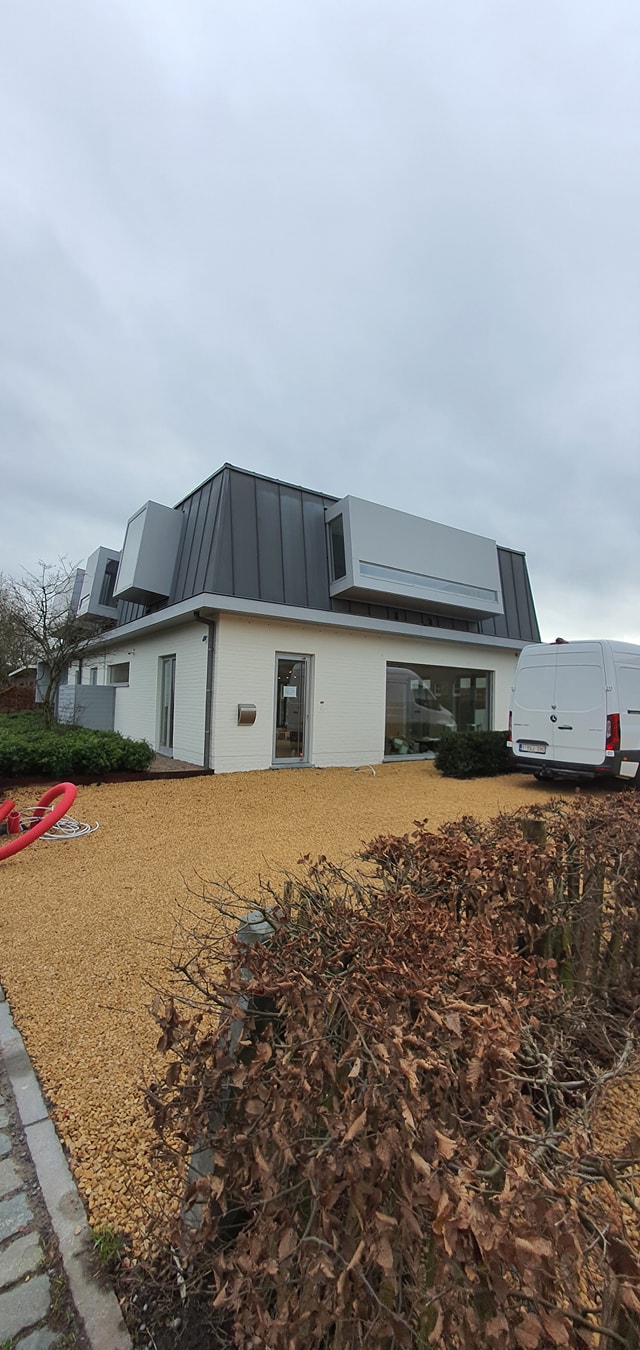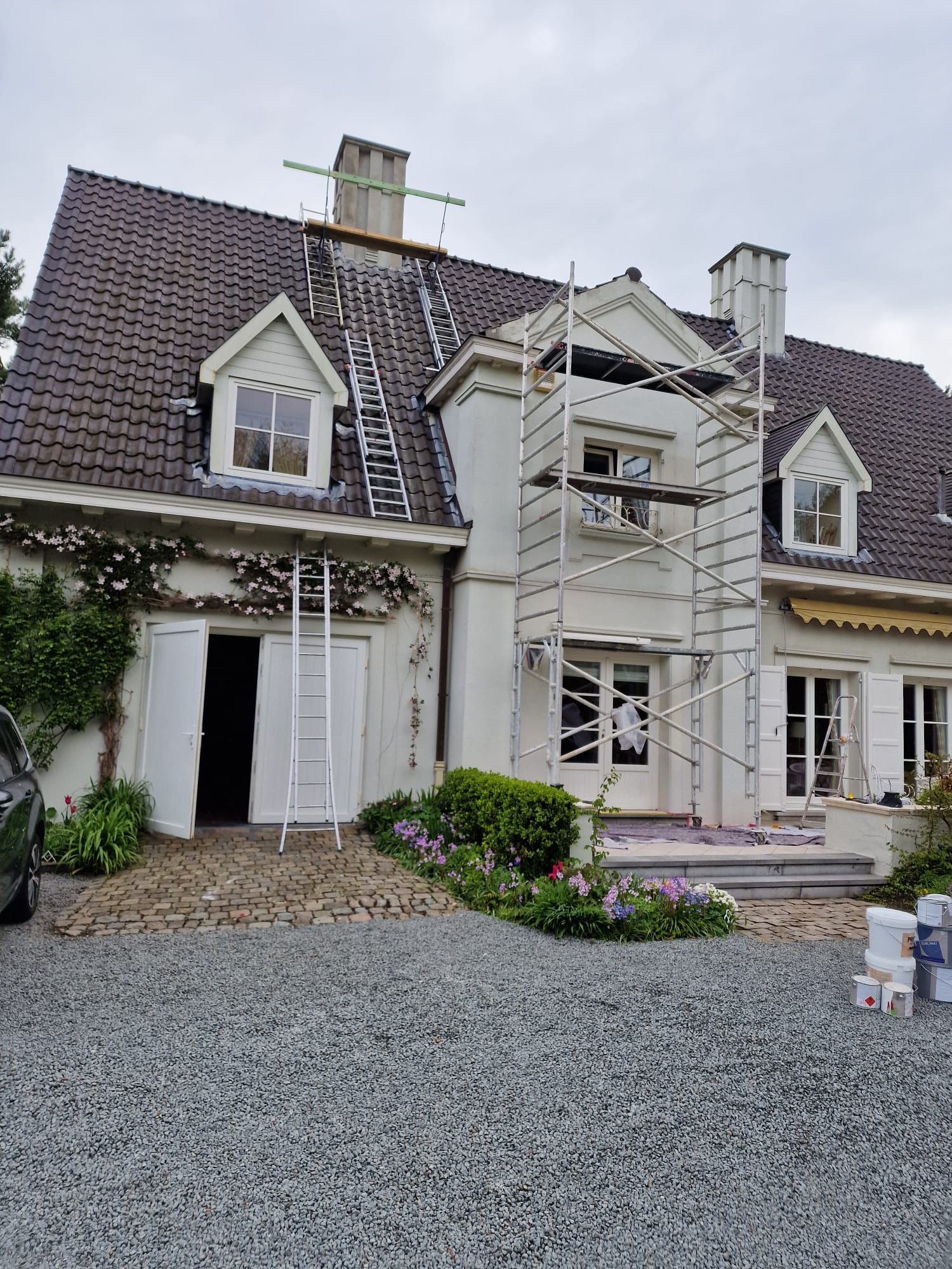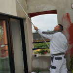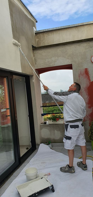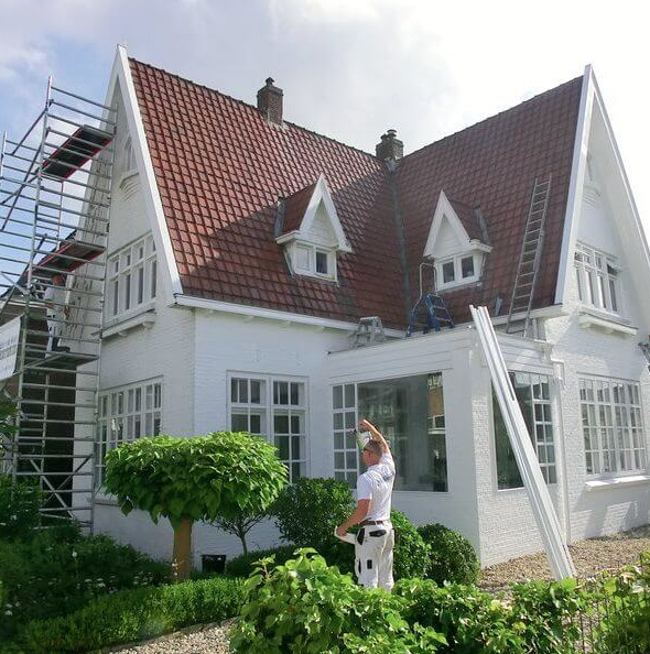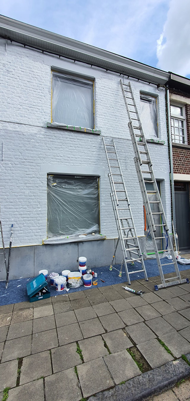 Onze exterieurschilders gaan stapsgewijs te werk. We verwijderen losse verf, oude verf- en vernislagen, schuren het te schilderen oppervlak lichtjes als het over hout gaat. Gevels worden stofvrij gemaakt, indien nodig ook ontdaan van mos. Geschilderde gevels worden met een sopje schoongemaakt. Een proper oppervlak is immers van primordiaal belang voor een goed schilderresultaat.